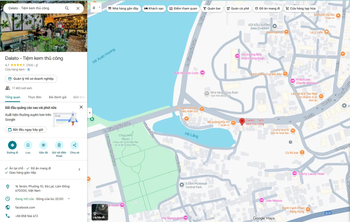 Nhấn vào hình trên để xem chỉ dẫn đến Dalato - 16 Yersin, Đà Lạt nhé.